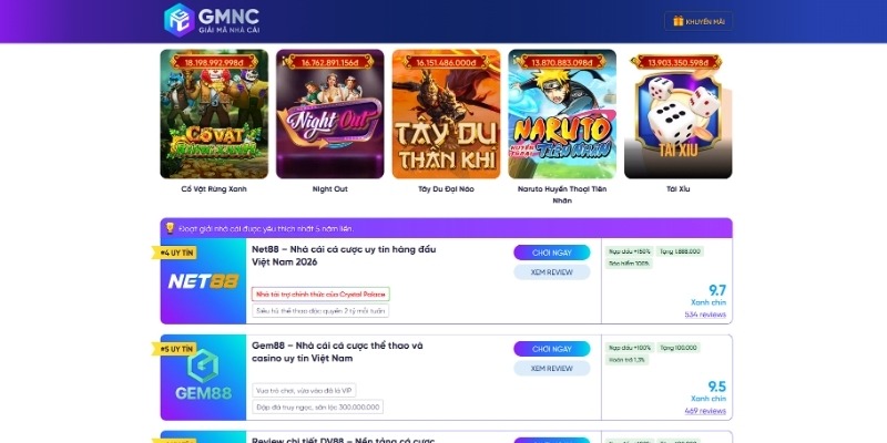 Hệ thống tổng hợp nhà cái uy tín từ GMNC